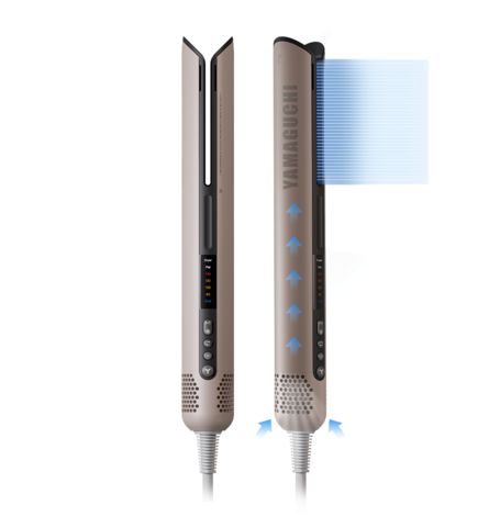 Фен-выпрямитель сочетает в себе передовые технологии укладки и бережного выпрямления волос. Мощный направленный поток создает зону низкого давления, мягко «затягивая» пряди в воздушную прослойку между пластинами. Волосы свободно парят в потоке нагретого воздуха, который ускоряет испарение влаги и одновременно разглаживает кутикулу за счет оптимального натяжения прядей. В отличие от обычных выпрямителей, фен бережно ухаживает за волосами, от корней до кончиков делая их гладкими и послушными, как после салонного ламинирования.