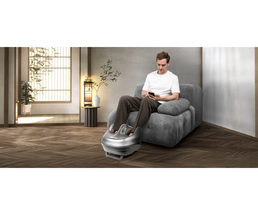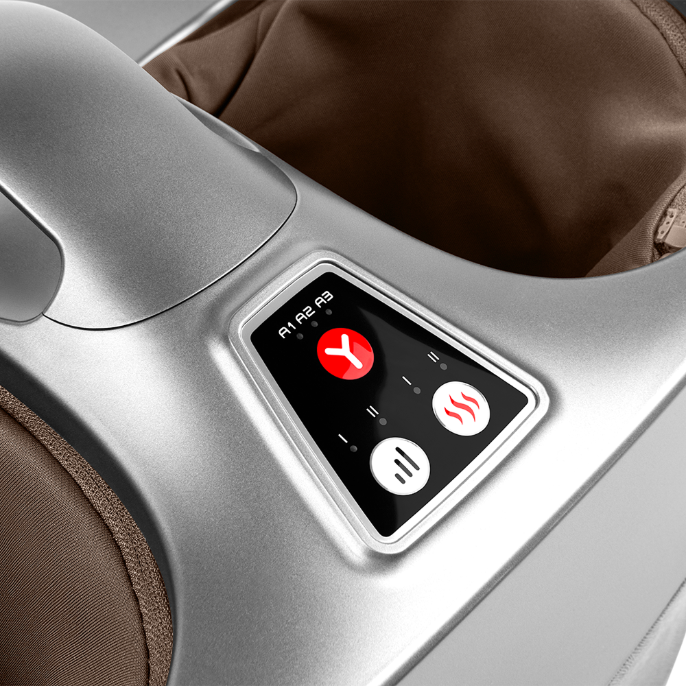 Пластина с аппликаторами и ролики основного механизма воспроизводят технику скребкового массажа Гуаша. Воздушные подушки мягко обжимают всю поверхность стопы, усиливая эффект и обеспечивая глубокое воздействие.